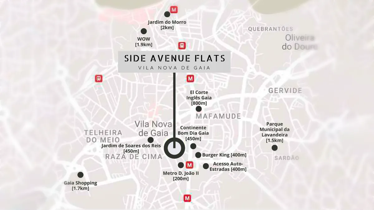 O Side Avenue oferece uma localização central e conveniente que lhe permitirá desfrutar plenamente do estilo de vida urbano, com todas as comodidades ao seu alcance.